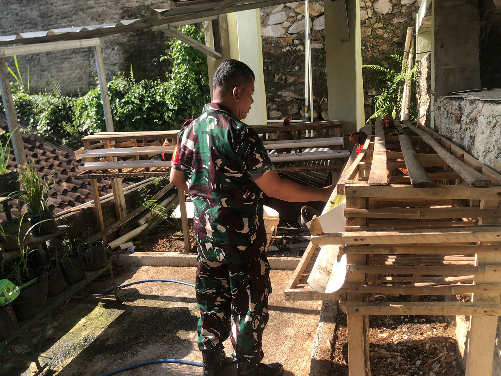 Selain mendampingi lahan pertanian, Koramil 410-04/TKT juga mengembangkan budidaya ayam petelur di kantor koramil. Saat ini terdapat “14 ekor ayam” yang menghasilkan 9-10 butir telur per hari atau setara dengan 16 kg per bulan.