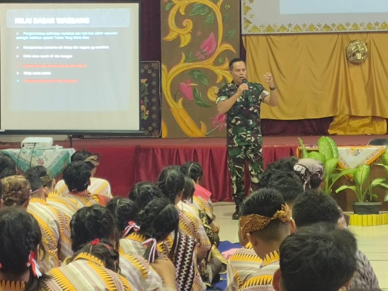 LAMPUNGRADAR24.co.id – Kopka Ferdi Sopyansah, Bintara Pembina Desa (Babinsa) Koramil 410-06/KDT, memberikan pelatihan Wawasan Kebangsaan (Wasbang) dan Peraturan Baris-Berbaris (PBB) kepada siswa kelas 10 SMA Fransiskus dalam rangka Masa Pengenalan Lingkungan Sekolah (MPLS) tahun ajaran 2025/2026. Kegiatan ini digelar pada Kamis (10/7) pagi di halaman sekolah setempat, Jalan Bumi Manti, Kampung Baru, Kecamatan Labuhan Ratu, Kamis (10/7/25).
