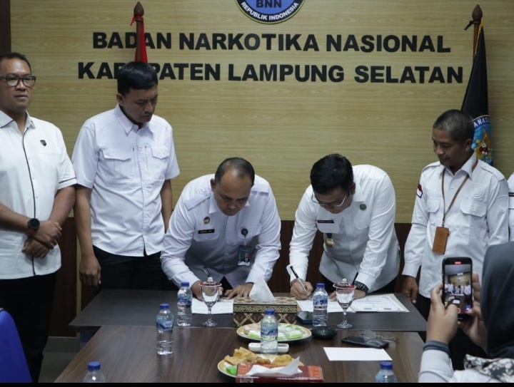 Penandatanganan perjanjian kerja sama ini diterima langsung oleh Kepala BNN Kabupaten Lampung Selatan, AKBP Rahmad Hidayat beserta jajaran.
