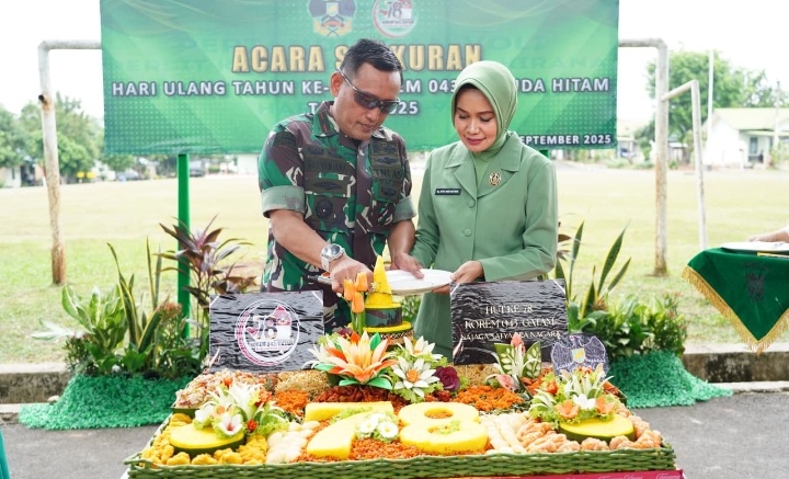 Acara syukuran ditandai dengan pemotongan tumpeng oleh Danrem 043/Gatam yang kemudian diberikan kepada prajurit termuda dan tertua, sebagai simbol kebersamaan dan kesinambungan pengabdian.
