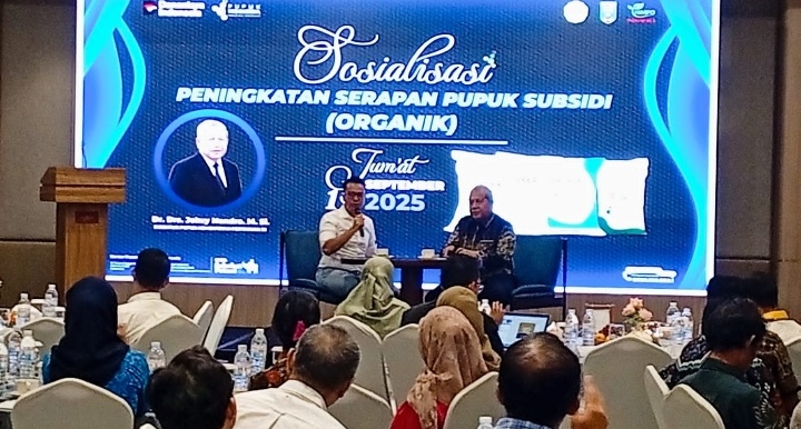 LAMPUNGRADAR24.co.id — PT Pupuk Indonesia (Persero) bersama Kementerian Pertanian RI menggelar kegiatan Sosialisasi Peningkatan Serapan Pupuk Organik Subsidi di Azana Boutique Hotel, Kota Bandarlampung, Jumat (19/9/2025).