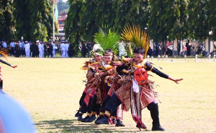 LAMPUNGRADAR24.co.id– Dalam rangka memperingati Hari Ulang Tahun (HUT) Tentara Nasional Indonesia (TNI) ke-80, Sanggar Tapis Berseri Dinas Pendidikan dan Kebudayaan Kota Bandar Lampung mempersembahkan sebuah tari kolosal yang megah dan sarat makna. Kolaborasi antara Pemerintah Kota (Pemkot) Bandar Lampung dengan Komando Distrik Militer (Kodim) 0410/KBL ini menjadi highlight dalam upacara peringatan yang digelar di Lapangan Korpri, Kompleks Kantor Gubernur Lampung, Minggu (5/10/2025) .