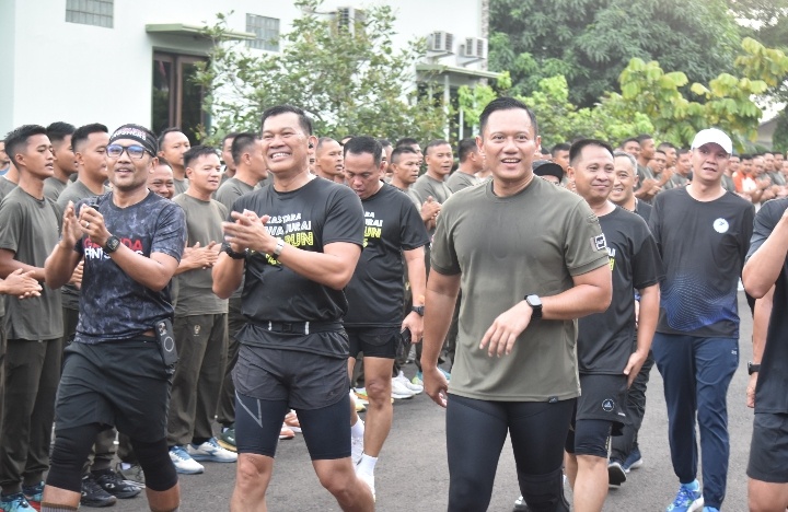 LAMPUNGRADAR24.co.id– Bersama Menteri Koordinator Infrastruktur dan Pembangunan Republik Indonesia H. Agus Harimurti Yudhoyono, M.Sc., M.P.A., M.A., prajurit Kodam XXI/Radin Inten beserta jajaran mengikuti kegiatan olahraga bersama di Kota Bandar Lampung, Selasa (14/10/2025).