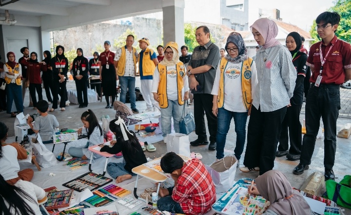 Pada kesempatna itu pula, Wakil Gubernur Jihan tampak berkeliling berbincang dengan anak-anak peserta kegiatan. Ia menyapa beberapa anak sambil mengamati hasil karya seni yang tengah dibuat.
