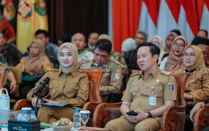 LAMPUNGRADAR24.co.id— Wakil Gubernur Lampung Jihan Nurlela mengikuti pelaksanaan Akad Massal Kredit Usaha Rakyat (KUR) bagi 800.000 pelaku Usaha Mikro, Kecil, dan Menengah (UMKM) yang digelar serentak di 38 provinsi seluruh Indonesia melalui virtual meeting bersama Presiden Republik Indonesia Prabowo Subianto, di Aula Mahan Agung, Bandarlampung, Selasa (21/10/2025).