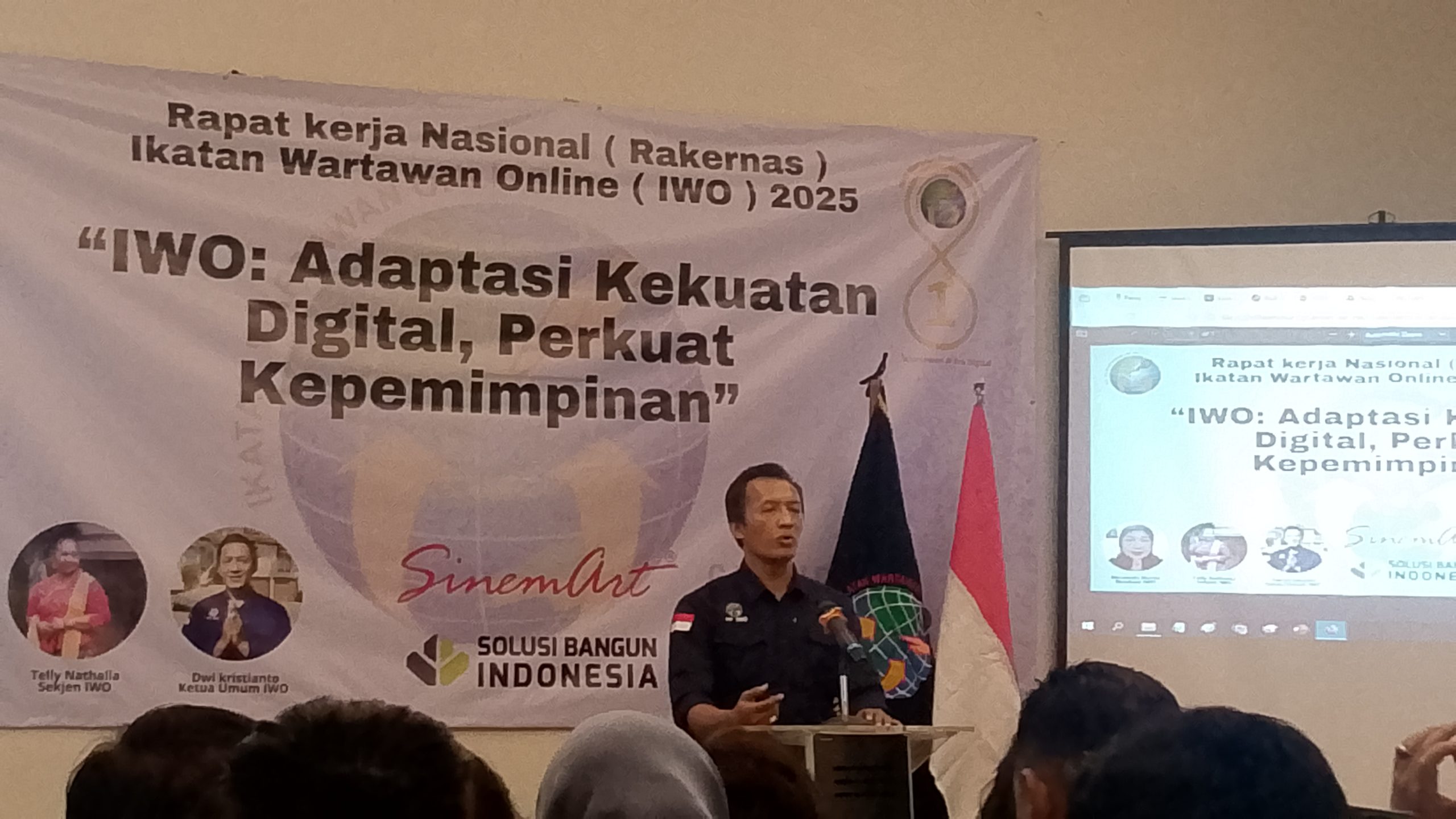 “Rakernas IWO 2025 ini kita mengusung tema ‘Adaptasi Kekuatan Digital, Perkuat Kepemimpinan’,” sebut Mas Dwi dalam sambutannya pada acara pembukaan Rakernas IWO 2025 di Hotel Grand Cemara, Menteng Jakpus, Rabu 22 Oktober 2025.