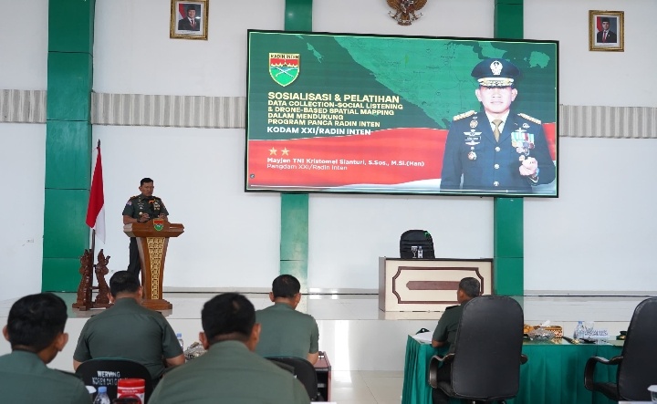 LAMPUNGRADAR24.co.id– Dalam rangka mendukung program Panca Raden Inten, Kodam XXI/Raden Inten menggelar kegiatan Sosialisasi dan Pelatihan Collection Social Listening serta Drone Based Spatial Mapping, yang dibuka secara resmi oleh Pangdam XXI/Raden Inten Mayjen TNI Kristomei Sianturi, S.Sos., M.Si.(Han), bertempat di Aula Sudirman Makodam XXI/Raden Inten, Jl. Teuku Umar, Penengahan, Bandar Lampung, Senin (27/10/2025).