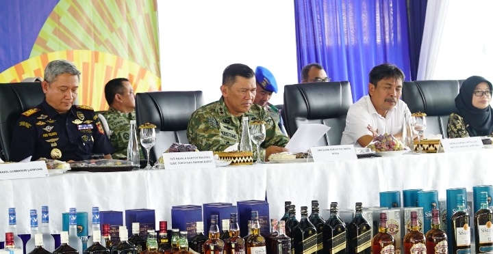 LAMPUNGRADAR24.co.id– Pangdam XXI/Radin Inten Mayjen TNI Kristomei Sianturi, S.Sos., M.Si. (Han) menghadiri kegiatan Pemusnahan Barang Milik Negara (BMN) hasil penindakan di bidang kepabeanan dan cukai oleh Kantor Wilayah Direktorat Jenderal Bea dan Cukai (DJBC) Sumatera Bagian Barat. Kegiatan tersebut berlangsung di halaman Kanwil DJBC Sumbagbar, Bandar Lampung. Kamis (6/11/2025).