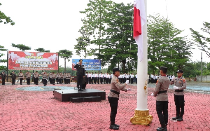 Upacara berlangsung khidmat dan dipimpin oleh Kapolres Pesawaran AKBP Heri Sulistyo Nugroho, S.I.K., M.I.K., yang diwakili oleh Wakapolres Pesawaran Kompol Sughandi Satria Nugraha, S.I.P., M.H., serta diikuti oleh seluruh pejabat utama (PJU), perwira, bintara, ASN, dan personel Polres Pesawaran.