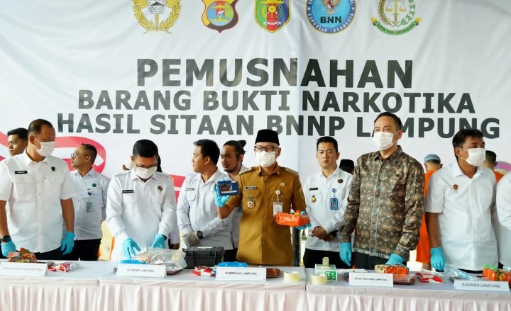 Barang bukti yang telah dipastikan positif kemudian dimusnahkan menggunakan alat incinerator. Proses pemusnahan dilakukan secara terbuka sebagai bentuk akuntabilitas dan komitmen pemerintah memberantas peredaran gelap narkoba di Lampung.