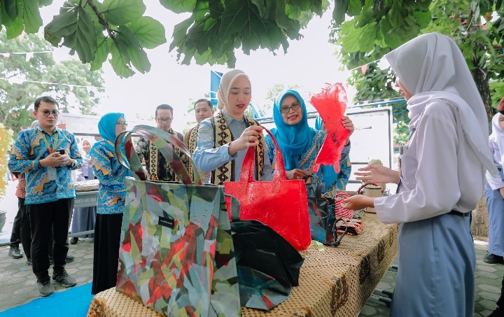 Selain meninjau pelaksanaan try out, Wagub Jihan mengikuti rangkaian kegiatan sekolah yang berkaitan dengan inovasi lingkungan. Ia meninjau bank sampah milik sekolah yang menjadi pusat pengelolaan sampah berbasis pemberdayaan siswa. Dari lokasi ini, siswa menunjukkan berbagai produk kreatif berbahan dasar sampah daur ulang, mulai dari tas, pot bunga, ecobrick, ecoensim, hingga satu set meja kursi ruang tamu. Beragam produk olahan lainnya seperti sabun, sampo, dan lilin berbahan daur ulang juga dipresentasikan sebagai bukti implementasi pendidikan lingkungan hidup di sekolah.
