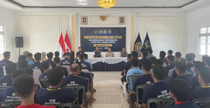 LAMPUNGRADAR24.co.id– Rutan Kelas I Bandar Lampung melaksanakan Penutupan Kegiatan Rehabilitasi bagi Warga Binaan Pemasyarakatan pada Jum’at (21 November 2025) bertempat di Aula Rutan. Kegiatan ini dihadiri oleh para Warga Binaan peserta rehabilitasi, pejabat struktural Rutan, serta jajaran pegawai yang tergabung dalam Panitia Rehabilitasi Tahun 2025.