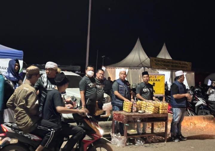 LAMPUNGRADAR24.co.id– Sebagai wujud kepedulian dan kedekatan dengan Masyarakat, Direktorat Reserse Kriminal Khusus (Ditreskrimsus) Polda Lampung membagikan ribuan paket snack berupa roti kepada jemaah pengajian Ijtimaah Tabligh Akbar, selepas pelaksanaan salat Maghrib, Sabtu (29/11/2024).