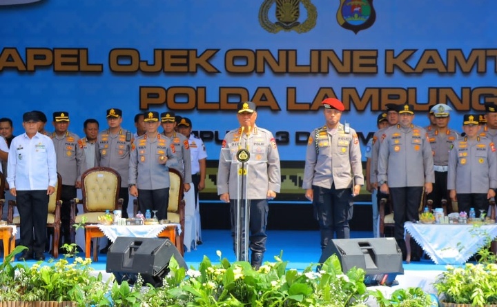 LAMPUNGRADAR24.co.id – Polri memperkuat sinergi keamanan berbasis Masyarakat melalui pelaksanaan Apel Ojek Online Kamtibmas Polda Lampung yang dipimpin Wakapolri Komjen Pol Dedi Prasetyo mewakili Kapolri pada Rabu, 3 Desember 2025, di Lapangan Apel Mapolda Lampung.