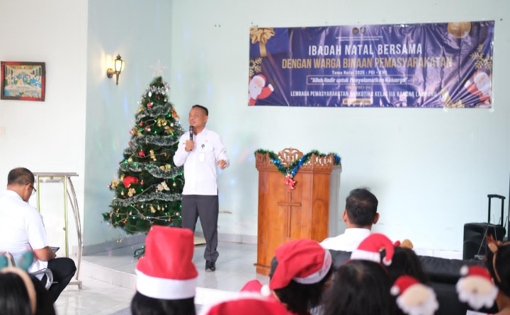 Kepala Lapas Narkotika Kelas IIA Bandar Lampung, Jumadi menyampaikan Ibadah Natal tahun ini menjadi momentum bagi warga binaan untuk memperkuat iman dan membangun kembali semangat kekeluargaan.