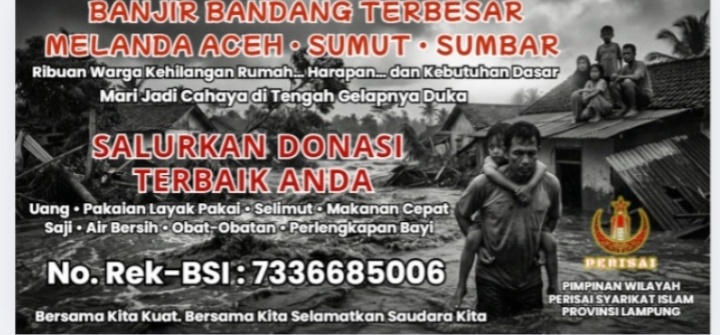 Selain mengumpulkan dana, DPW Perisai SI Lampung juga membuka posko penerimaan bantuan berupa kebutuhan pokok seperti obat-obatan, pakaian layak pakai, makanan siap saji, serta perlengkapan anak-anak dan balita.