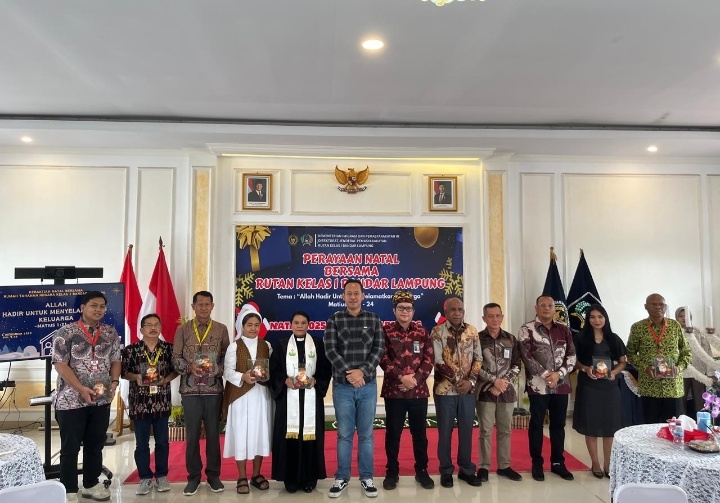 LAMPUNGRADAR24.co.id– Rumah Tahanan Negara (Rutan) Kelas I Bandar Lampung menggelar perayaan Natal bersama pada Sabtu (06/12/2025) yang berlangsung dengan hikmat dan penuh sukacita di Aula Rutan. Kegiatan ini dihadiri oleh Kepala Rutan Kelas I Bandar Lampung, pejabat struktural, tamu undangan dari pihak gereja, pegawai, serta warga binaan pemasyarakatan.