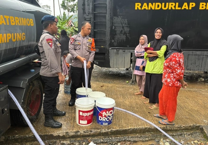 Komandan penugasan Iptu Fajar Fachrizi di lapangan menyampaikan bahwa distribusi air bersih dilakukan dengan mendatangi titik-titik yang sulit dijangkau.