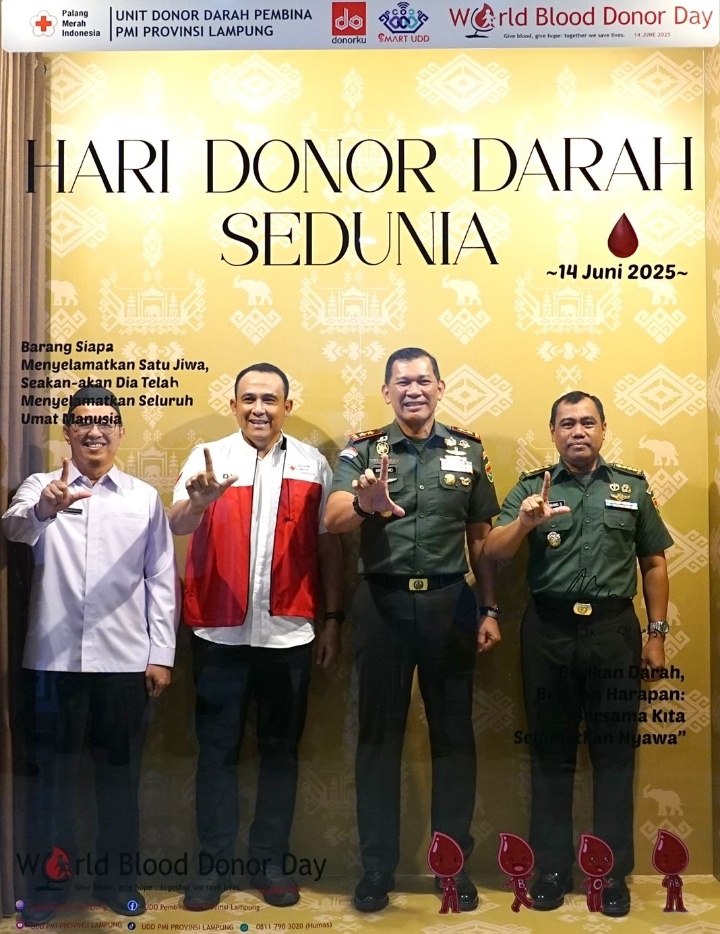 Kepala UDD Pembina PMI Provinsi Lampung, Dr. Mars Dwi Tjahjo, Sp.U, menyampaikan apresiasi atas kontribusi TNI dalam membantu pemenuhan kebutuhan darah untuk pelayanan kesehatan di daerah.