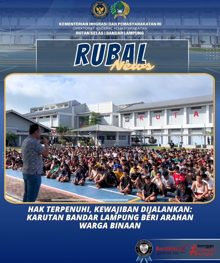 LAMPUNGRADAR24.co.id— Kepala Rumah Tahanan Negara (Rutan) Kelas I Bandar Lampung, Tri Wahyu Santosa, memberikan pengarahan terkait hak dan kewajiban warga binaan pada Sabtu, 20 Desember 2025, bertempat di Lapangan Rutan Kelas I Bandar Lampung.