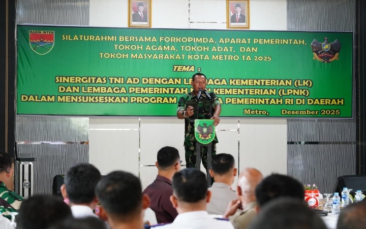 Silaturahmi Tahun Anggaran 2025 ini mengusung tema “Sinergitas TNI AD dengan Lembaga Kementerian (LK) dan Lembaga Pemerintah Non Kementerian (LPNK) dalam Mensukseskan Program Asta Cita Pemerintah RI di Daerah.” Kegiatan dipimpin langsung oleh Danrem 043/Gatam Brigjen TNI Haryantana, S.H., serta dihadiri Wali Kota Metro H. Bambang Iman Santoso, S.Sos., M.Pdi.