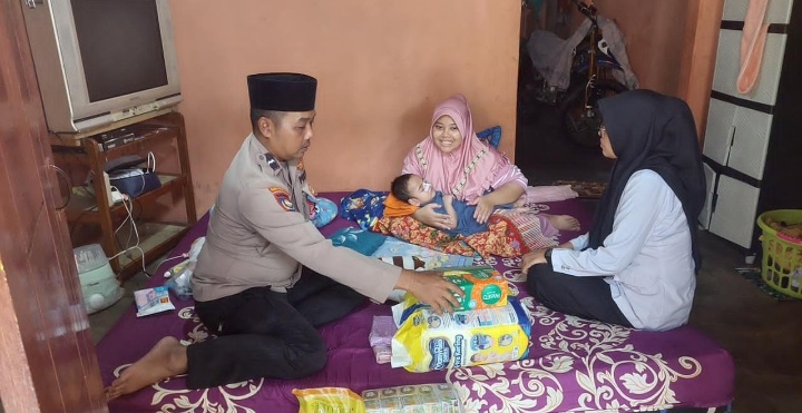 Tergerak oleh rasa empati, Aipda Leonardo selaku Bhabinkamtibmas Polsek Bangun Rejo bersama sang istri hadir langsung untuk memberikan dukungan moral sekaligus bantuan.