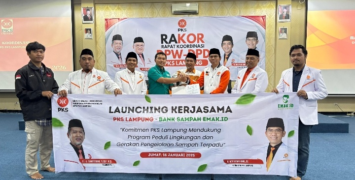 LAMPUNGRADAR24.co.id– Dewan Pimpinan Wilayah “Partai Keadilan Sejahtera (PKS) Provinsi Lampung resmi menandatangani nota kesepahaman (MoU) dengan Bank Sampah Emak.id, Jumat (16/1/2026). Kerja sama ini menandai PKS Lampung sebagai partai politik pertama di Provinsi Lampung yang secara kelembagaan menjalin kolaborasi dengan bank sampah induk terbesar di daerah tersebut.