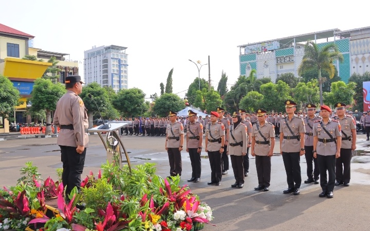 Upacara sertijab berlangsung khidmat dan tertib, diikuti oleh pejabat utama, perwira, personel, serta Bhayangkari Cabang Kota Bandar Lampung.