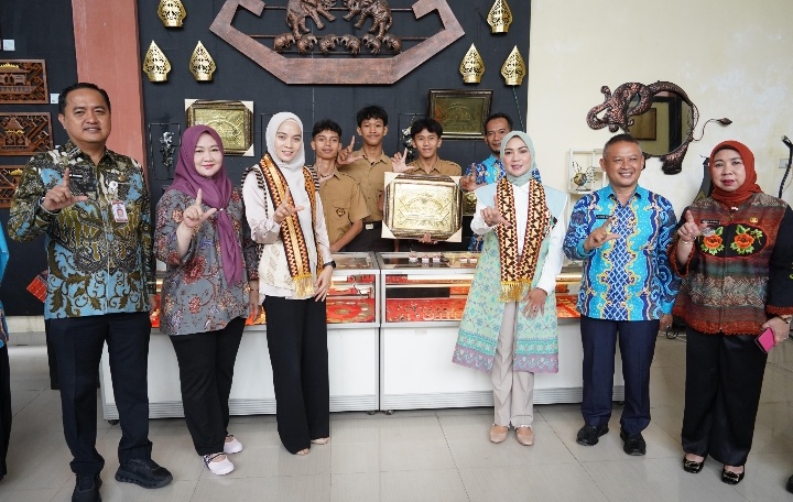 Dalam kesempatan tersebut, Purnama Wulan Sari Mirza berkesempatan meninjau Galeri SMKN 5 Bandar Lampung yang menampilkan beragam hasil karya kreatif siswa berbasis seni dan teknologi, mulai dari batik tulis, sulam tapis khas Lampung, desain visual, hingga berbagai produk kriya dan aksesori.