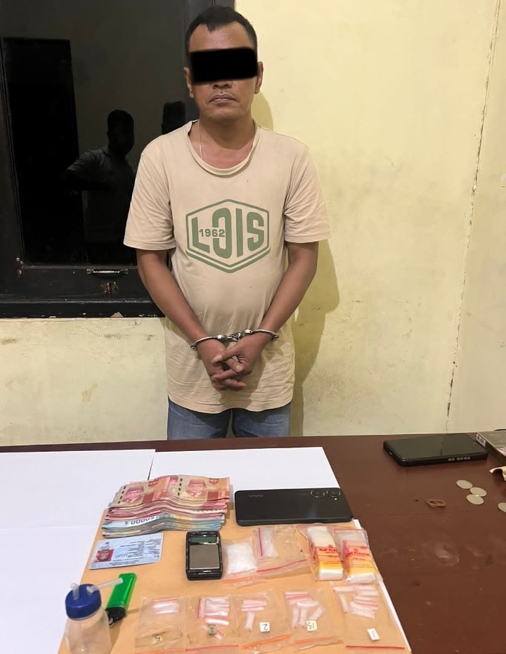 Dalam penggerebekan di rumah tersebut, petugas mendapati seorang pria berinisial L.H. (52) sedang berada di dalam kamar dan diduga tengah menggunakan narkotika jenis sabu. Dari hasil penggeledahan, polisi menemukan puluhan paket sabu siap edar beserta berbagai peralatan pendukung.