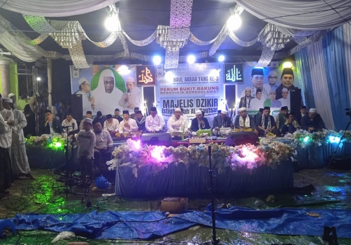 LAMPUNGRADAR24.co.id- Menyambut datangnya bulan suci Ramadhan 1446 H/2026 M, Majelis Istighosah Al Kautsar melaksanakan Pengajian Tabligh Akbar sekaligus Haul Akbar yang ke 3 Al-Maghfurlah Abah KH. Abdul Ghofur serta Perum Bukit Bakung Indah Berdzikir dan Bersholawat di Jalan utama Perum Bukit Bakung Indah, Sabtu (31/01/2026) Malam.