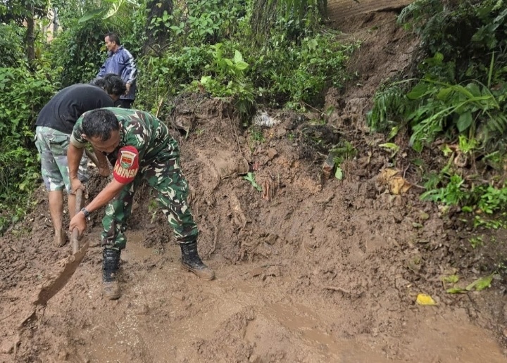 Longsoran terjadi di Jalan Ir. Sutami, Gang Selajo, pasca hujan deras yang mengguyur kawasan tersebut. Material tanah menutupi sebuah jalan setapak yang vital bagi akses warga. Mendapatkan laporan kejadian, Babinsa segera bergerak ke lokasi untuk memantau dan melakukan penanganan.