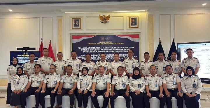 LAMPUNGRADAR24.co.id— Kantor Wilayah Direktorat Jenderal Pemasyarakatan (Kanwil Ditjenpas) Lampung bersama seluruh Unit Pelaksana Teknis (UPT) Pemasyarakatan se-Provinsi Lampung melaksanakan kegiatan Penandatanganan Komitmen Bersama dan Pakta Integritas Pembangunan Zona Integritas menuju Wilayah Bebas dari Korupsi (WBK) dan Wilayah Birokrasi Bersih dan Melayani (WBBM) Tahun 2026.