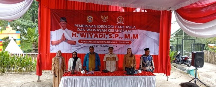 LAMPUNGRADAR24.co id -;Pimpinan DPRD Kota Bandar Lampung Wiyadi, menggelar kegiatan Pembinaan Ideologi Pancasila (PIP) dan Wawasan Kebangsaan di Lengkung Langit, Sumberejo, Kemiling, Kota Bandarlampung, Minggu (22/02/2026).