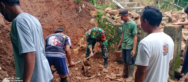 Mendapat laporan dari Ketua RT setempat, Bapak Iyus, Babinsa Kelurahan Sumur Putur, Sertu Toto Susilo dari Koramil 410-02/TBS, langsung bergerak cepat menuju lokasi. Kehadiran aparat kewilayahan ini menjadi simbol kepedulian TNI kepada Masyarakat yang tertimpa musibah.