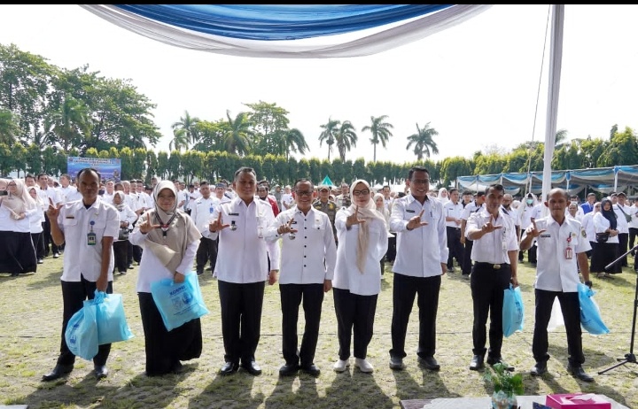 Pada kesempatan tersebut, Sulfakar secara simbolis menyerahkan paket Ramadan Korpri Berbagi kepada perwakilan ASN, baik PNS maupun PPPK, didampingi para pejabat pimpinan tinggi pratama di lingkungan Pemerintah Provinsi Lampung.