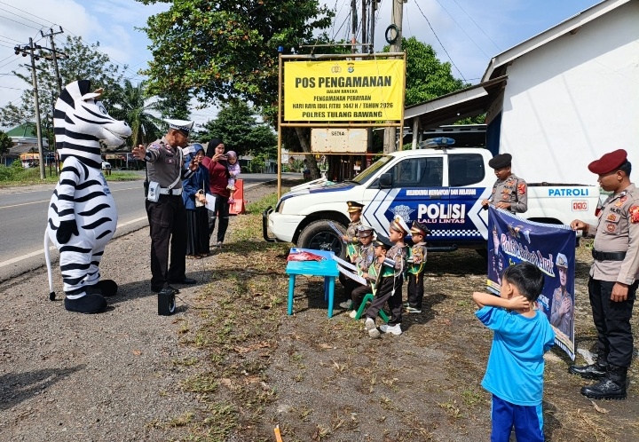 LAMPUNGRADAR24.co.id – Unit Keselamatan Lalu Lintas (Kamsel) Satuan Lalu Lintas (Sat Lantas) Polres Tulang Bawang menggelar kegiatan Polisi Sahabat Anak (POLSANA) yang penuh semangat pada Senin (16/03/2026) pukul 08.30 WIB bertempat di Pos Pengamanan Menggala. Kegiatan ini diikuti oleh 10 siswa TK ARROYAN Menggala sebagai “Reporter Cilik” serta didampingi oleh 5 guru.