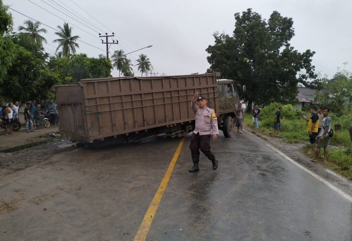 Setibanya di lokasi, petugas langsung melakukan pengamanan tempat kejadian perkara serta pengaturan arus lalu lintas guna mengurai kemacetan, mengingat posisi kendaraan truk sempat melintang di badan jalan.