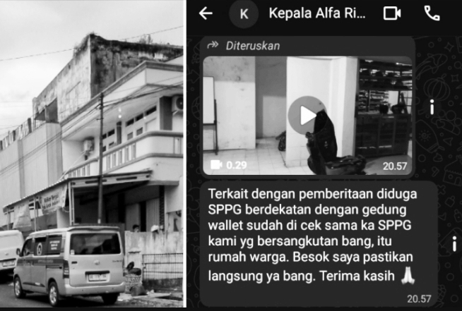 Melalui pesan WhatsApp pada Selasa (30/3/2026), Alfarizi hanya menyatakan lokasi sudah dicek dan mengklaim bangunan itu rumah warga. “Sudah di cek sama kepala SPPG kami yang bersangkutan bang, itu rumah warga. Besok saya pastikan langsung ya bang. Terima kasih,” ujarnya.