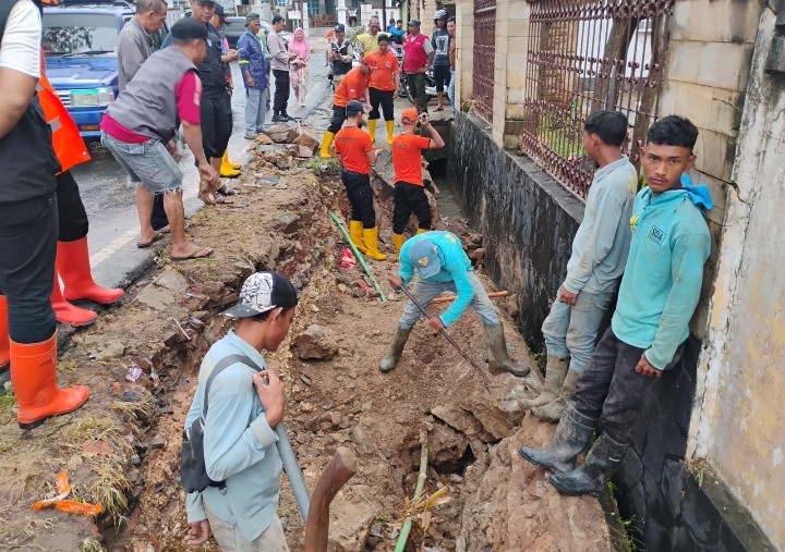 LAMPUNGRADAR24.co.id– Hujan deras yang melanda Kota Bandar Lampung pada Jumat sore (10/4/2026) menyebabkan pondasi selokan di samping jembatan Jalan Pulau Morotai, Kelurahan Gunung Sula, Kecamatan Way Halim, ambrol sepanjang 10 meter. Material tanah longsor menutup total aliran selokan, berpotensi memicu banjir bandang. Namun, berkat gerak cepat jajaran TNI AD melalui program Kodim 0410/KBL yang digawangi oleh Babinsa, bencana lebih besar dapat dicegah.
