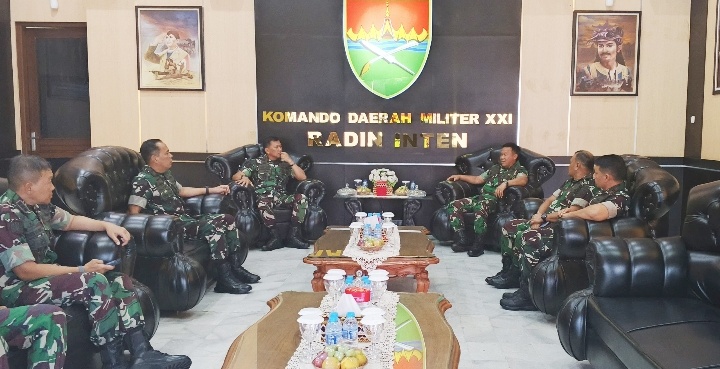 LAMPUNGRADAR24.co.id- Pangdam XXI/Radin Inten, Mayjen TNI Kristomei Sianturi, S.Sos., M.Si. (Han), menerima Kunjungan Kerja Danpusterad, Letjen TNI Mochamad Syafei Kasno, S.H., yang dilaksanakan di Lobby Makodam XXI/Radin Inten, Kamis (23/04/2026).