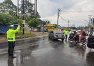 Dedikasi Tanpa Batas, Polisi Lalu Lintas Pesawaran Siaga di Jalur Padat Meski Diguyur Hujan